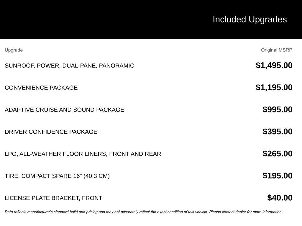 - Sunroof, Power, Dual-Pane, Panoramic