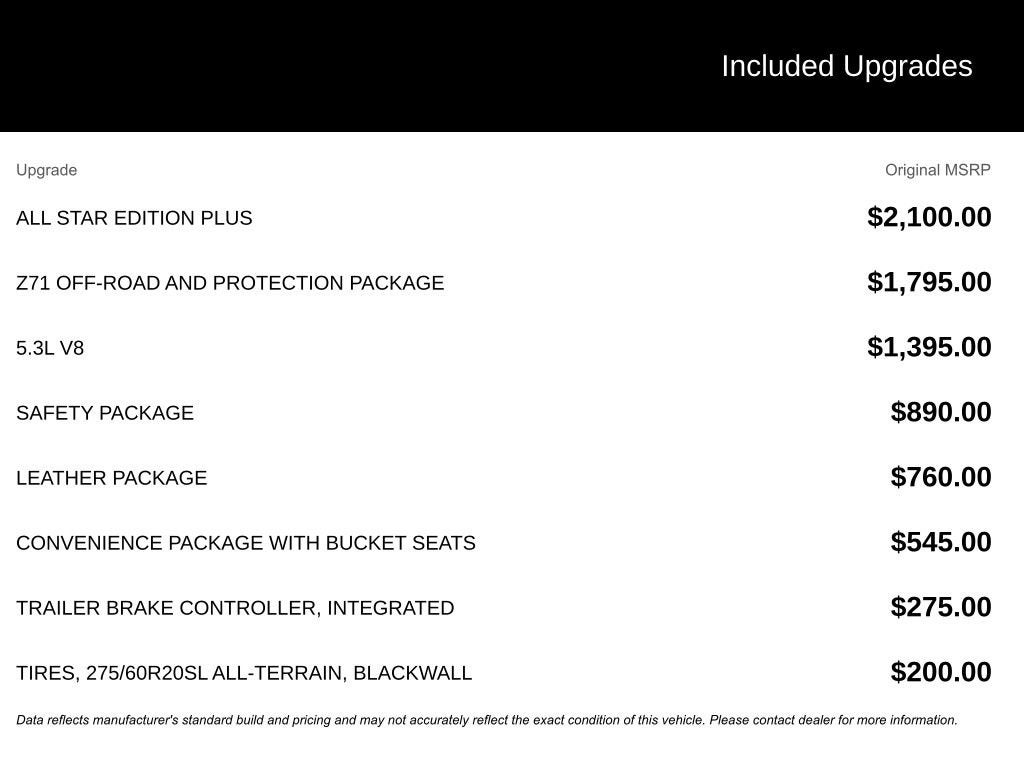 - All-Star Edition Plus, Z71 Off-Road and Protection Package
