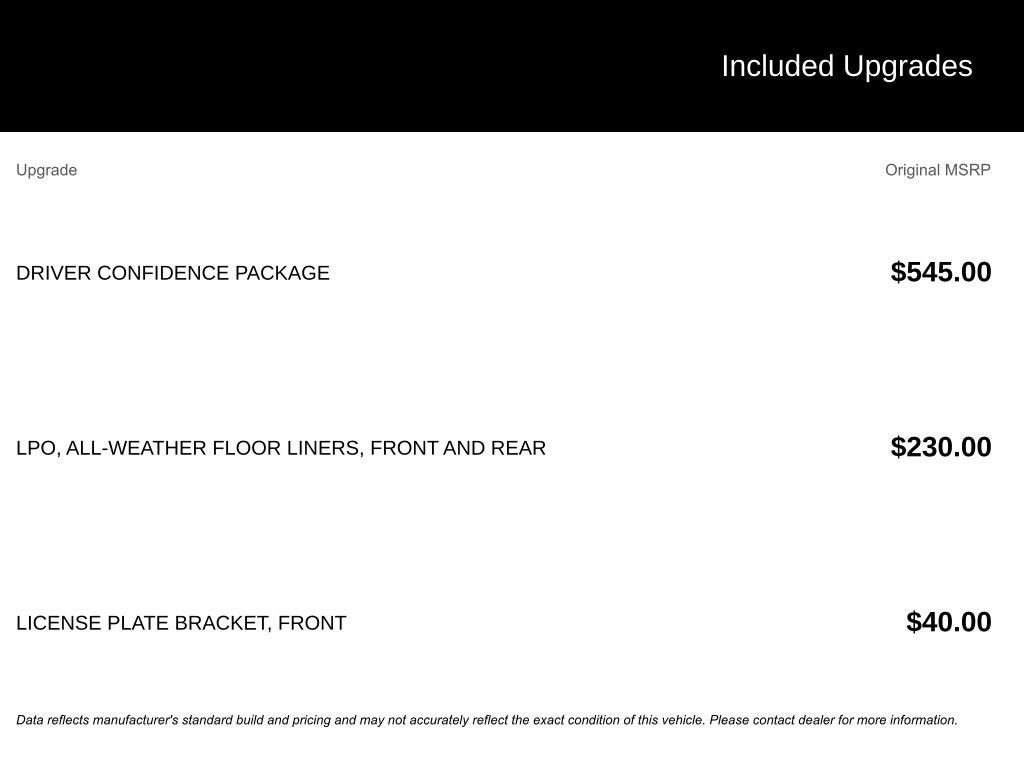 - DRIVER CONFIDENCE PACKAGE (Includes Rear Park Assist, Lane Change Alert with Side Blind Zone Alert, and Rear Cross Traffic Alert)